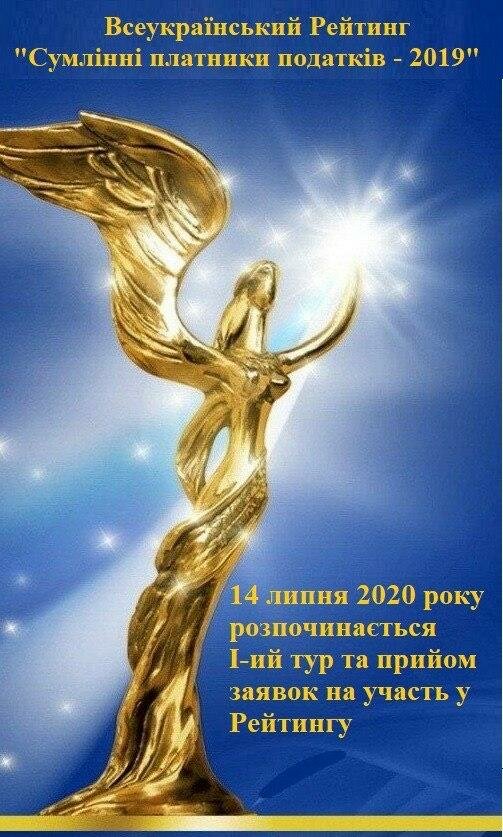 Увага! Прийом Заявок на участь у Рейтингу «Сумлінні платники податків — 2019» за результатами діяльності попереднього року триватиме з 14 липня по 14 серпня 2019 року.
