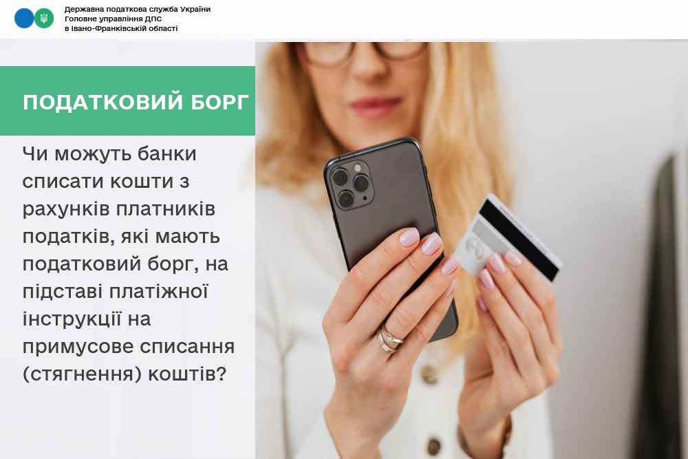 Чи можуть банки списати кошти з рахунків платників податків, які мають податковий борг, на підставі платіжної інструкції на примусове списання (стягнення) коштів та яким чином?