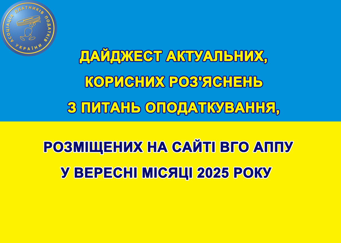 Дайджест актуальних, корисних роз’яснень з питань оподаткування, розміщених на сайті ВГО АППУ у вересні місяці 2025 року