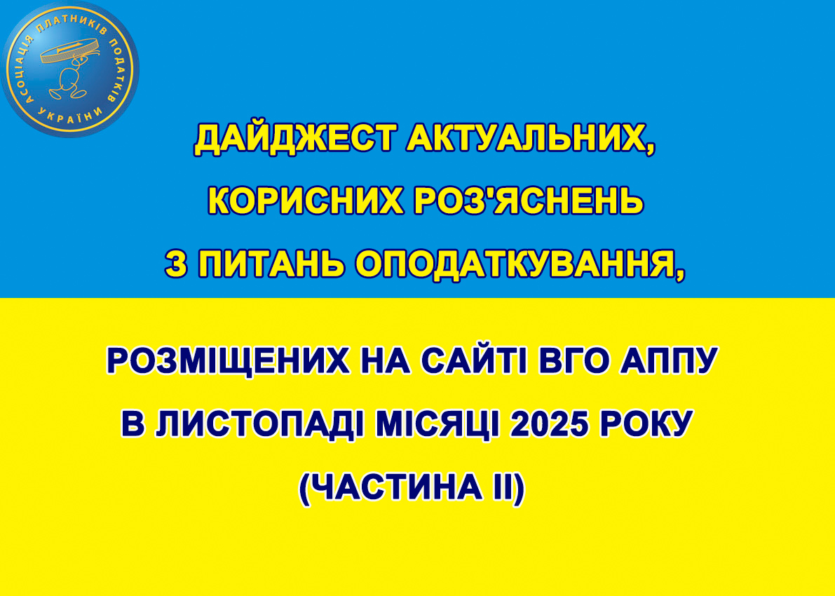 Дайджест актуальних, корисних роз’яснень з питань оподаткування, розміщених на сайті ВГО АППУ в листопаді місяці 2025 року (частина ІІ)