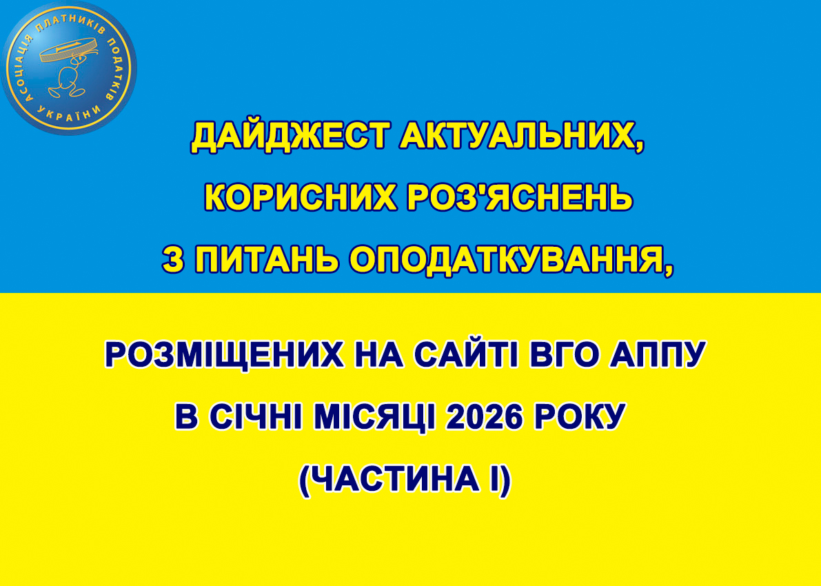 Дайджест актуальних, корисних роз’яснень з питань оподаткування, розміщених на сайті ВГО АППУ в січні місяці 2026 року (частина І)