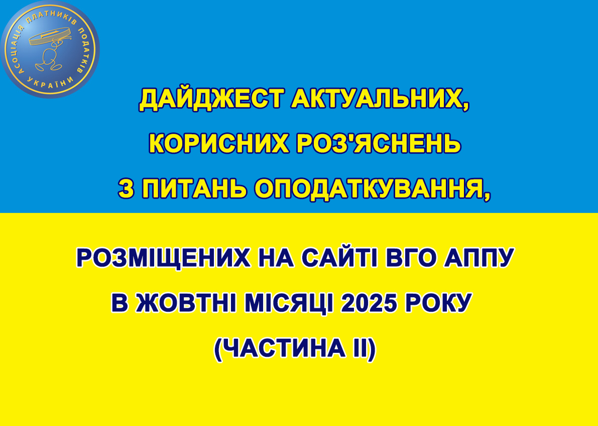 Дайджест актуальних, корисних роз’яснень з питань оподаткування, розміщених на сайті ВГО АППУ в жовтні місяці 2025 року (частина ІІ)