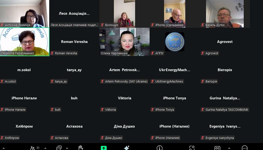 Генеральна дирекція Асоціації платників податків України провела 1-ий в 2026 році спільний онлайн Вебінар за участю партнера Олени Харламової