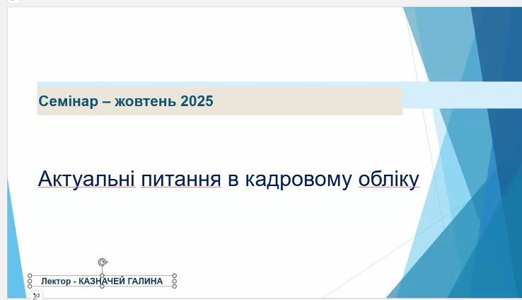 02 жовтня 2025 року Генеральною дирекцією ВГО «Асоціація платників податків України» було проведено черговий, безкоштовний вже 30-й в цьому році, для членів Асоціації платників податків України онлайн Вебінар. Лектором заходу виступила партнерка Асоціації, експертка з трудового права та оплати праці, консультантка та авторка фахових видань з бухгалтерського обліку Галина Казначей, яка висвітлила актуальну, як для роботодавців, так і для працівників тему: «Актуальні питання в кадровому обліку».