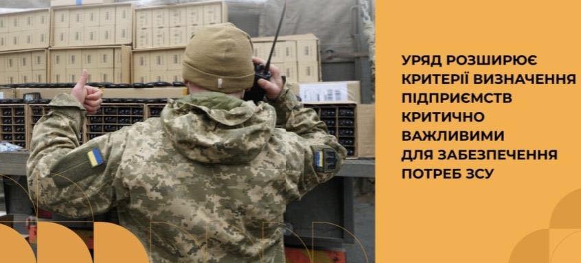 Кабмін розширив критерії визначення критично важливих підприємств для забезпечення потреб ЗСУ в особливий період