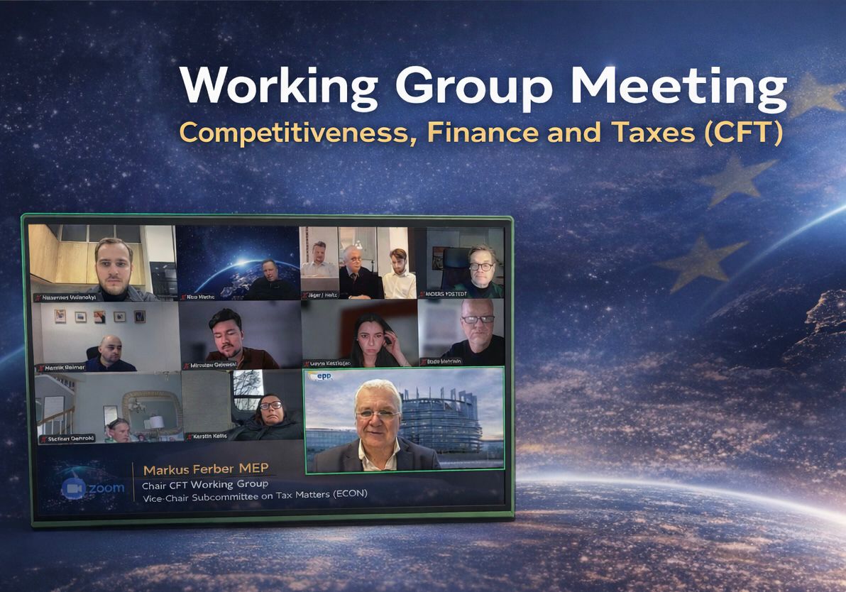 Конкурентоспроможність Європейського Союзу, фінансування МСБ та податкова політика — саме про це йшлося під час засідання робочої групи Європейської асоціації платників податків — Competitiveness, Finance & Taxes (CFT) під головуванням Markus Ferber, депутата Європейського парламенту, віце-голови FISC та члена комітету ECON.