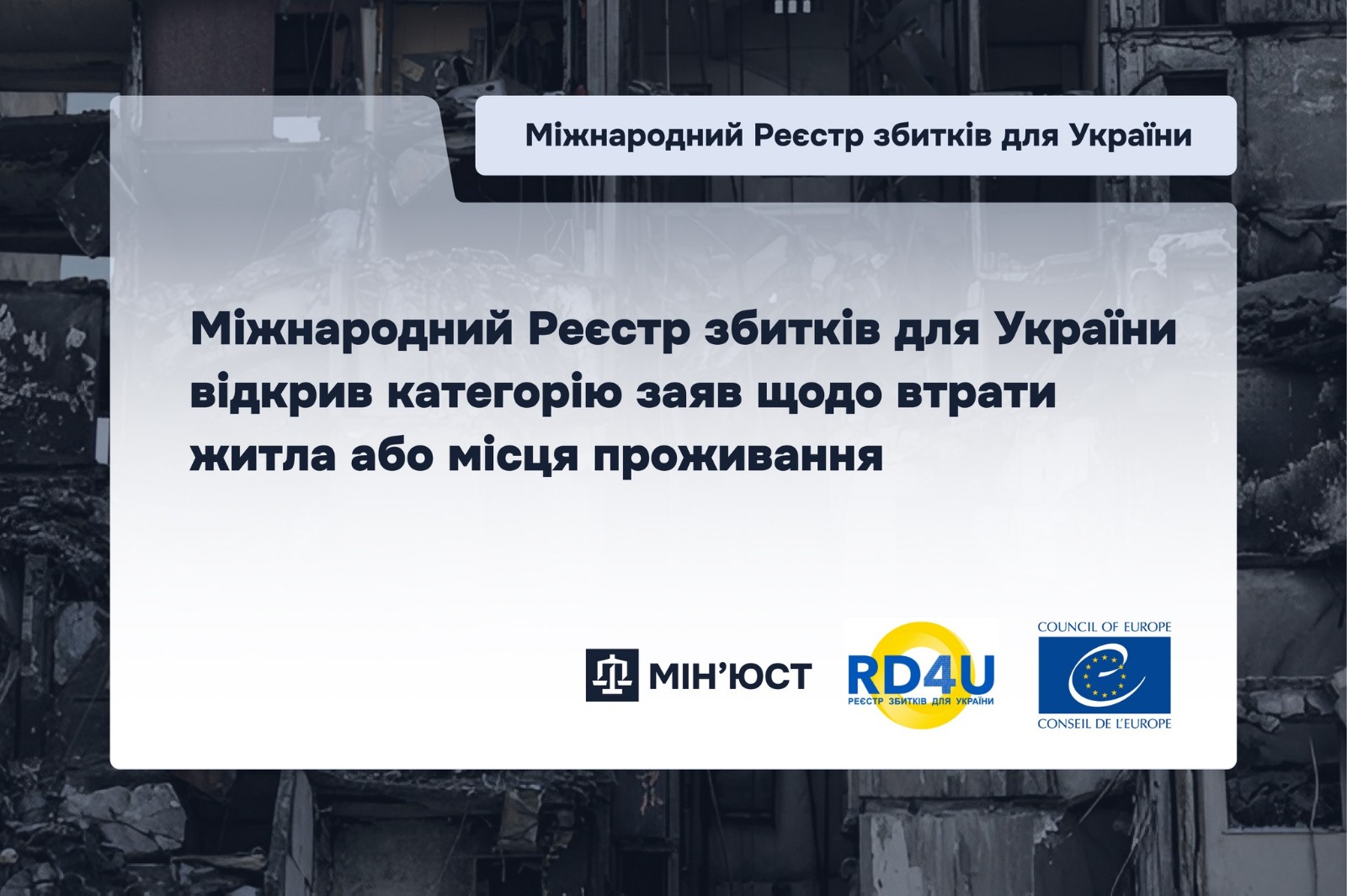 Міжнародний Реєстр збитків, завданих агресією Російської Федерації проти України, оголосив про відкриття для подання заяв нової категорії — A3.3 «Втрата житла або місця проживання».