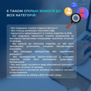 — рівень сплати ПДВ – рівний або вищий від середнього по галузі за останні 12 звітних періодів,