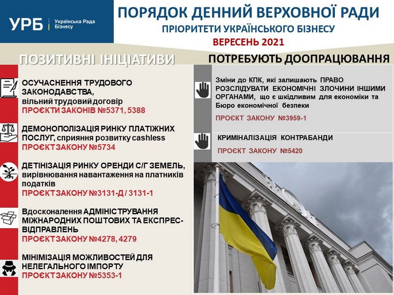 ПОРЯДОК ДЕННИЙ ВЕРХОВНОЇ РАДИ І ПРІОРИТЕТИ УКРАЇНСЬКОГО БІЗНЕСУ Вересень 2021