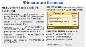 Грігол Катамадзе продемонстрував на слайдах результати опитування, за яким було визначено 243 загрози у сфері фіскальної безпеки, до основних з яких належить: шахрайство з ПДВ, «схеми» мінімізації податкових платежів, лобіювання представниками влади окремих груп та компаній з просування для них вигідних податкових (митних) умов (преференцій), «тінізація» окремих видів бізнесу, інформаційні атаки щодо дискредитації фіскальної системи, прояви корупції у фіскальній сфері.