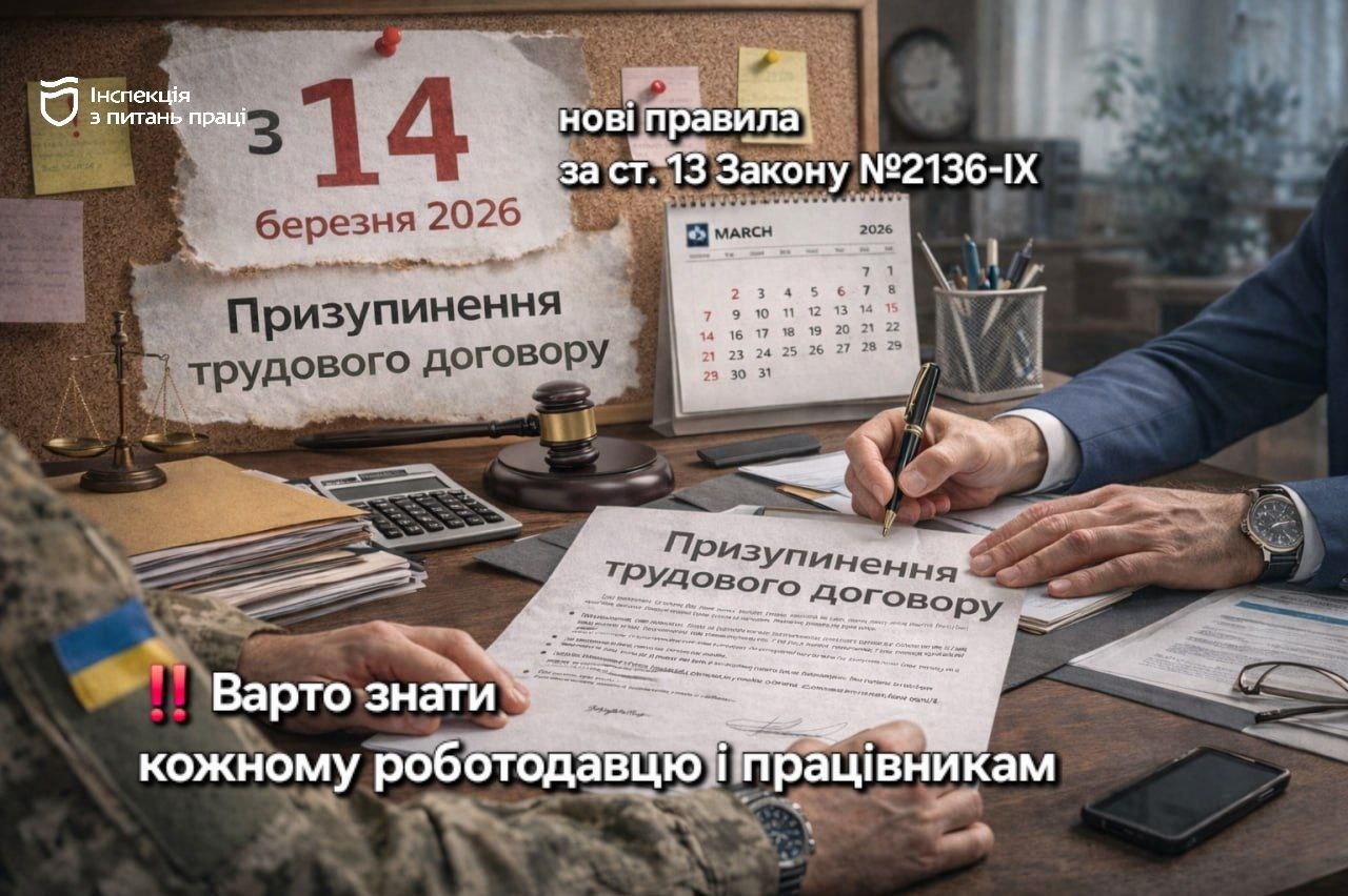 Призупинення дії трудового договору: нові правила з 14 березня 2026 року