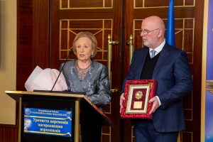 Далі, Грігол Катамадзе виконав відповідальну та почесну місію: нагородив члена ВРК, члена Ради ВГО АППУ, Голову Наглядової Ради АТ «Фармак» Філю Іванівну Жебровську Вищою Відзнакою Всеукраїнської громадської організації «Асоціація платників податків України», також вручив іменну Відзнаку Асоціації «НАДІЙНИЙ ПАРТНЕР ВГО АППУ 14 РОКІВ» та привітав Філю Іванівну Плакеткою з Днем народження.