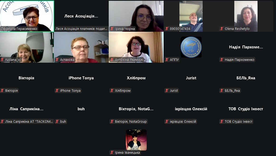 Модератор онлайн Вебінару, Людмила Герасименко, відкрила захід та висловила вдячність членам Асоціації – платникам податків, які не зважаючи ні на що знаходять можливість сплачувати щорічні членські внески.