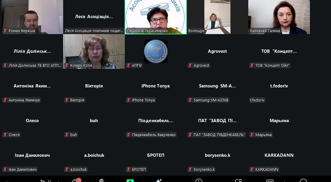Наприкінці Модератор заходу – Віце – президент, Генеральний директор ВГО АППУ Людмила Герасименко подякувала фахівцям Генеральної дирекції за якісну організацію та проведення заходу: Лесі Кашпур, Вікторії Беспаловій, Антоніні Якимчук, запевнила всіх учасників заходу, що платники податків — члени ВГО «Асоціація платників податків України» завжди можуть розраховувати на підтримку Генеральної дирекції, її особисту та побажала всім спокою, світлих надій, упевненості в завтрашньому дні та якнайшвидше справедливого миру!