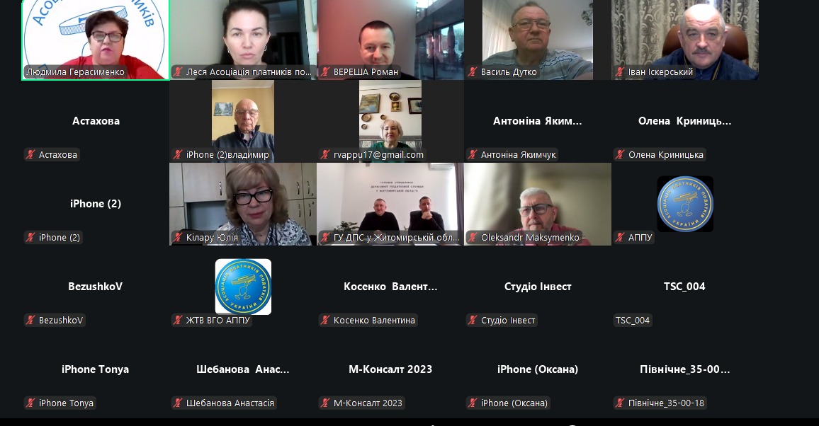 31 березня 2026 року відбулася відкрита онлайн Робоча зустріч з керівниками управління з питань виявлення та опрацювання податкових ризиків ГУ ДПС у Житомирській області, яку промодерувала особисто Віце-президент, Генеральний директор ВГО АППУ Людмила Герасименко.