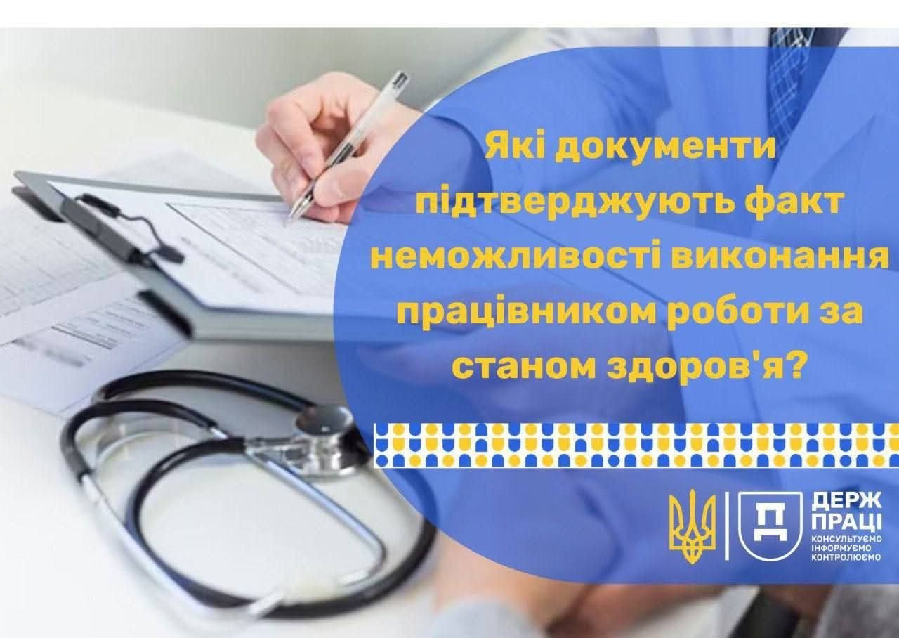 Які документи підтверджують факт неможливості виконання працівником роботи за станом здоров’я?