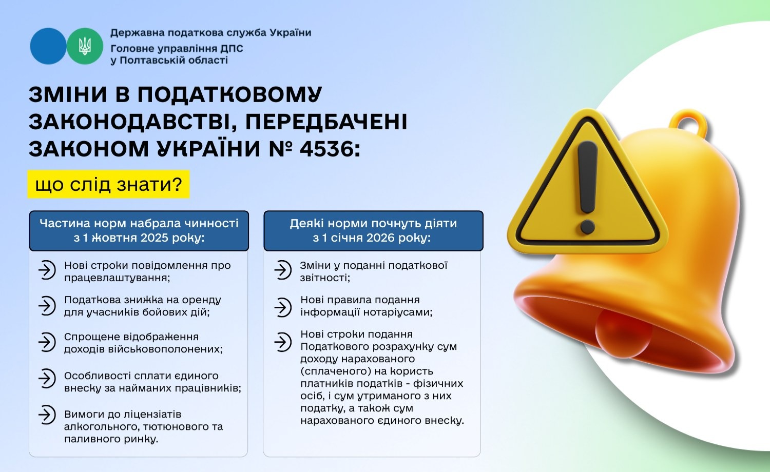 При цьому більшість норм Закону № 4536 набирає чинності з першого числа місяця, наступного за місяцем його опублікування, тобто з 01 жовтня 2025 року.